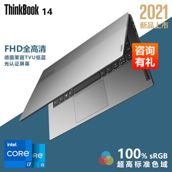 聯(lián)想ThinkBook 14 2021款 14英寸輕薄筆記本電腦 【6ACD】 11代酷睿i5-1135G7 核顯 16G 512G 100%sRGB 高色域 標配